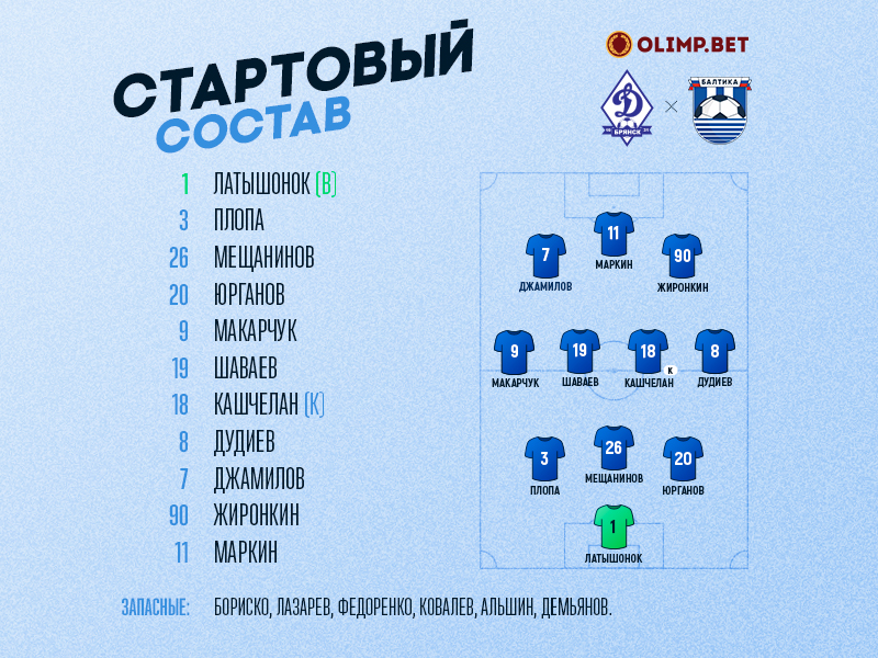 Стартовый состав Балтийцев на игру против «Динамо-Брянск»