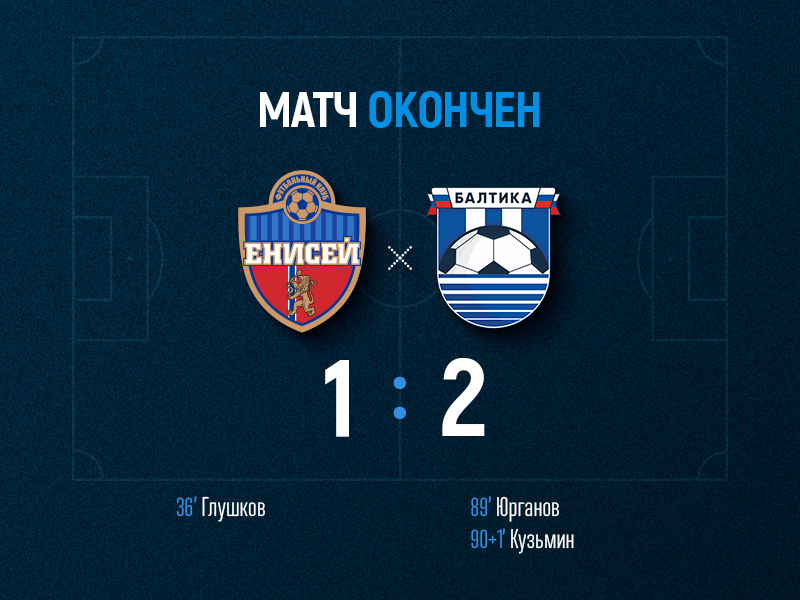 На 21 минуте Балтийцы остались в меньшинстве. Главный арбитр встречи удалил Ивана Маклакова. На 36 минуте гол в составе «Енисея» забил Никита Глушков, пробив в нижний угол ворот Евгения Латышонка. На 77 минуте составы уравнялись. Артем Абрамов жестко сыграл на бровке и получив вторую желтую карточку был удален с поля. Игорь Юрганов на 89 минуте сравнял счет, а на 91 Максим Кузьмин дальним ударом поставил точку в матче. Сумасшедшая победа! Поздравляем всех болельщиков.