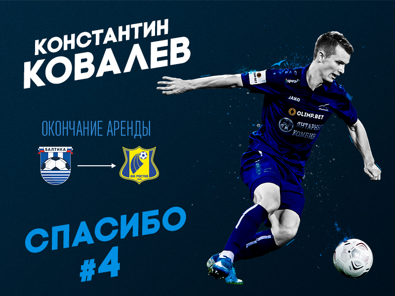 ФК «Ростов» активировал опцию досрочного возвращения в клуб Константина Ковалева. Между футбольными клубами «Балтика» и «Ростов» достигнута договоренность об окончании аренды Константина Ковалева.